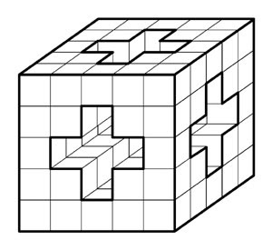 “다음 그림과 같이 모서리가 5㎝인 정육면체의 각 모서리를 5등분하고, 가운데 부분을 모두 관통시킨 입체도형을 만들었습니다. 이 입체도형을 관통시키기 전과 관통시킨 후의 겉넓이의 차를 구하시오.”
